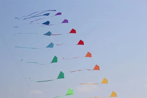 Eddybögen sind die absoluten Klassiker auf jedem Drachenfest. Dieser wunderschöne Eddybogen besteht aus 20 Einzeldrachen.