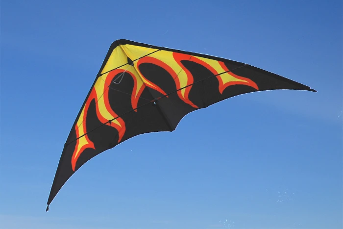 Als idealer Kinderdrachen kommt der Flame Lenkdrachen fertig angeleint daher!Der FLAME gehört zur Serie der Glasfaserdrachen. Dieses sind Drachen, die eine preisgünstige Alternative zu den hochwertigen Kohlefasergestänge-Drachen darstellen
