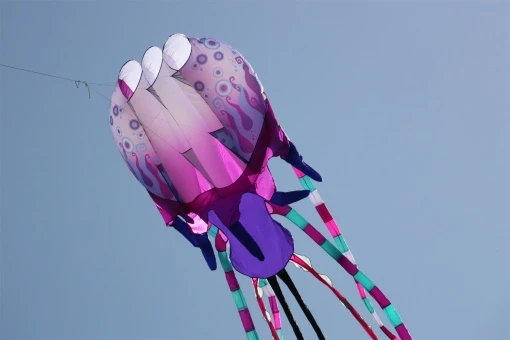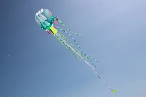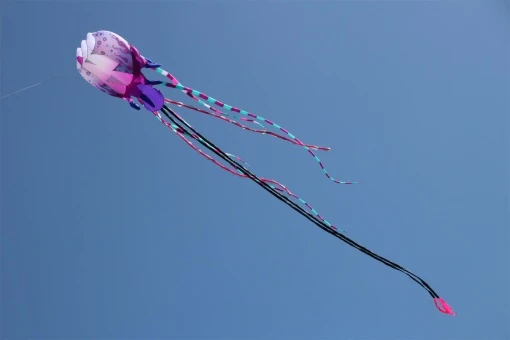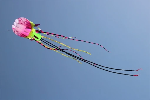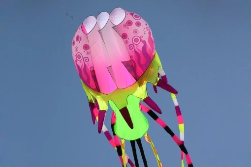 Diese Qualle ist einfach riesig! Leuchtende Farben zaubern den Himmel bunt und die langen Tentakel erzeugen ein immer anderes Flugbild.