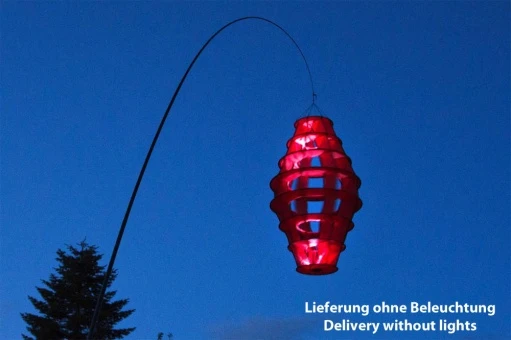 An langen Teleskopruten hängend, dreht sich der Lampion nicht nur um seine eigene Achse, er hebt und senkt sich zusätzlich langsam in der Vertikalen.