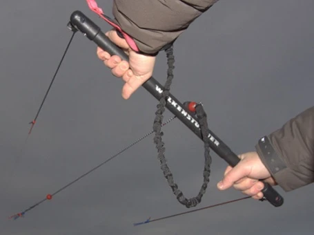 Mit der Trainerbar funktioniert der Powerkite wie ein Dreileiner. Unkompliziertes Fliegen, und bequemes Starten und Landen sind gesichert. Besonders ist, dass der Vierleiner mit dem vorhanden Waagesystem auch an Handles zu fliegen ist, die optional erhältlich sind.