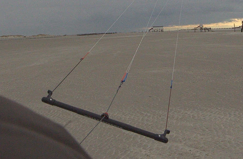 Mit der Trainerbar funktioniert der Powerkite wie ein Dreileiner. Unkompliziertes Fliegen, und bequemes Starten und Landen sind gesichert. Besonders ist, dass der Vierleiner mit dem vorhanden Waagesystem auch an Handles zu fliegen ist, die optional erhältlich sind.