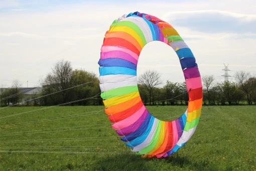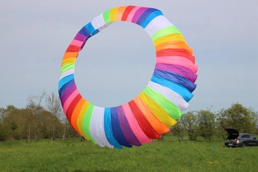 Der Ring Kite ist wie alle Bol´s der Klassiker auf jedem Drachenfest! Mit 4m Durchmesser ist dieser Ring Kite echt groß und bringt einiges an Zugkraft an die Leine. Wir empfehlen 2 Personen um den großen Ring Kite zu bändigen!
