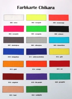 | Farbe | weiss – 001, neongelb – 002, neonorange – 003, neonpink – 004, neongrün – 005, schwarz – 006, dunkelgrau – 007, silbergrau – 008, himmelblau – 009, königsblau – 010, mitternachtsblau – 011, gelb – 012, gold – 013, orange – 014, rot – 015, ziegelrot – 016, lila purple – 019, grasgrün – 020, haut – 023, waldgrün – 024 |