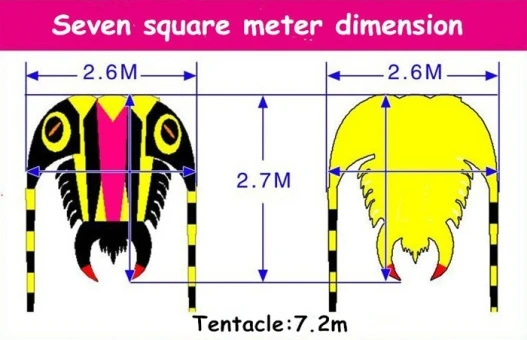- Kopf 2,6 x 2,7m, Tentakel 7,2m