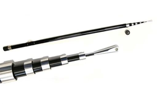 Diese Teleskopruten sind aus verstärkter dickwandiger Glasfaser, die Enden der Segmente zusätzlich mit einem Metallring verstärkt.