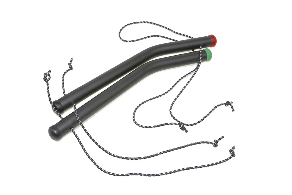 Durchlaufender Tampen für die Hauptleine mit Trapeztampen ermöglichen das Einhängen eines in ein Umlenkrolle eine Trapezes. Durchlaufende Tampen auch für die Bremsschnüre, welch auf der Rückseite der Griffe eine Schlaufe bilden. Hiermit kann der Schirm über einem Bodenanker oder ähnlichem „geparkt“ werden. Preis pro Paar!